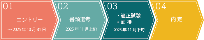 ・書類選考合格者を対象として、11月下旬に適性試験等と面接を行います。